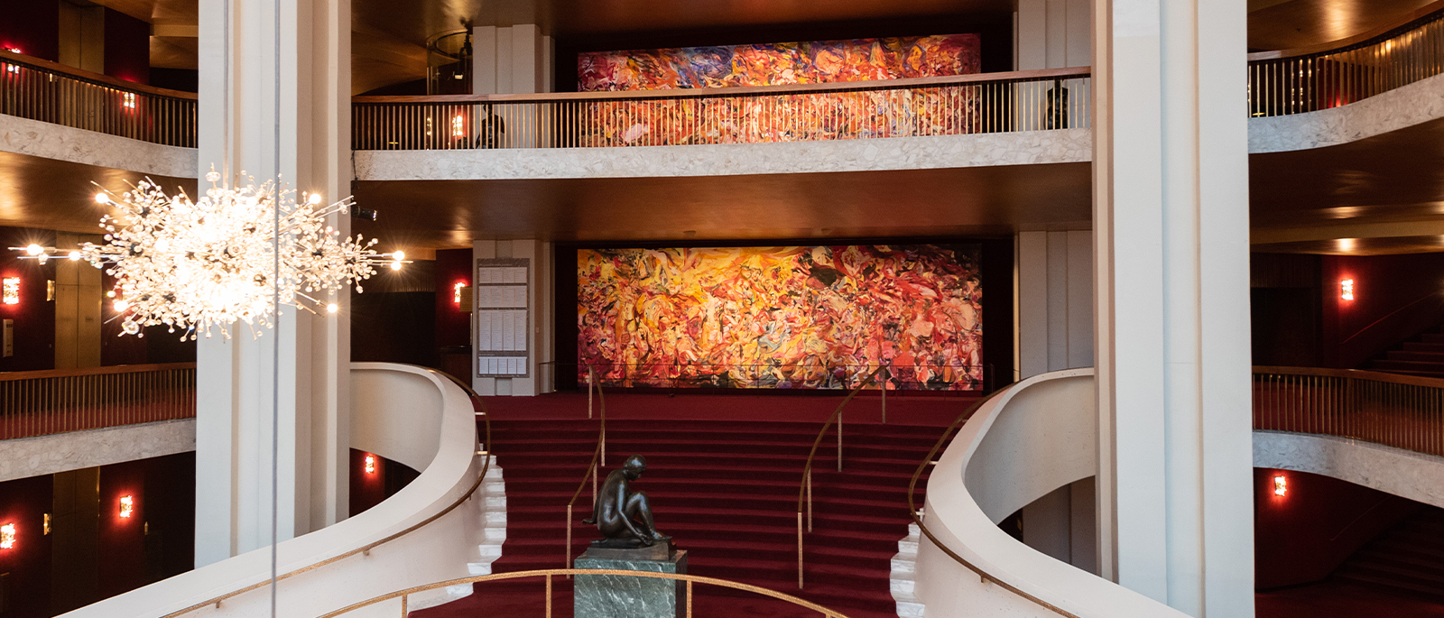 Conceived by General Manager Peter Gelb and Dodie Kazanjian, the founding director and curator, Gallery Met continues and reaffirms the Met’s long history of groundbreaking relationships with major visual artists—such as Chagall and Hockney—while fostering new opportunities for collaboration. Since the 2018–19 season, Gallery Met has expanded from its initial ground floor gallery to all corners of the Met’s grand public spaces.